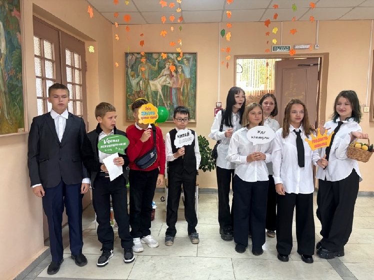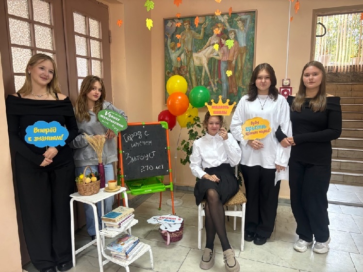 Красочно оформили входную зону библиотеки, где разместили поздравления с праздником 1 сентября, цитаты из школьной жизни, украсив композицию шарами и осенними листьями.