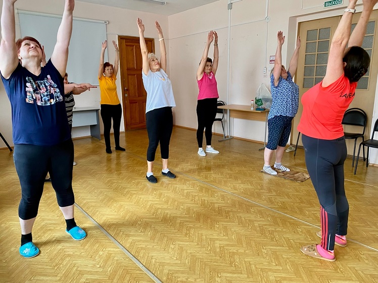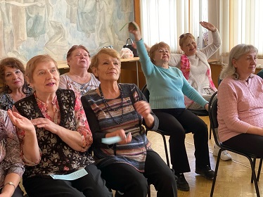 С группой «Здоровье», в которой занимаются люди серебряного возраста, библиотекари сделали бодрую зарядку под веселую музыку.