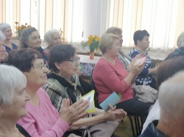 Гости праздника с удовольствием участвовали в шуточных конкурсах, читали стихи и пели песни. Какие? Конечно же, об осени, о жизни, о любви. Радостные улыбки на лицах, искорки в глазах – все это говорило о том, что на День пожилого человека никто не пришел. В зале сидели молодые, энергичные, позитивные люди, которые много знают, еще много чего могут сделать и делают, а значит в Библиотеке «Дом друзей» впереди новые радостные и теплые встречи с друзьями и единомышленниками всех возрастов.