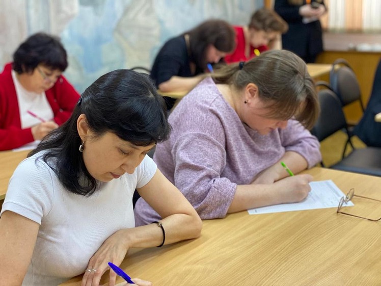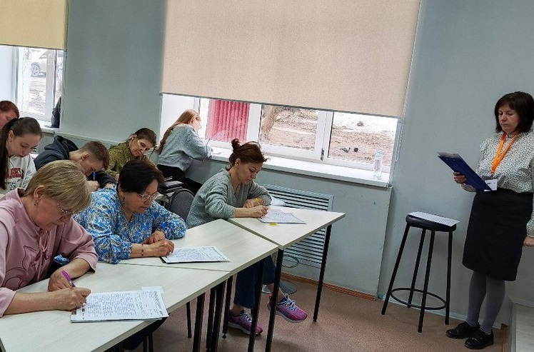 Участники акции смогли проверить свою грамотность под руководством опытных организаторов: представителей школы скорочтения и развития интеллекта, а также библиотеки. Диктатором стала учитель русского языка и литературы школы №90 с многолетним стажем Юлия Александровна Жукова.