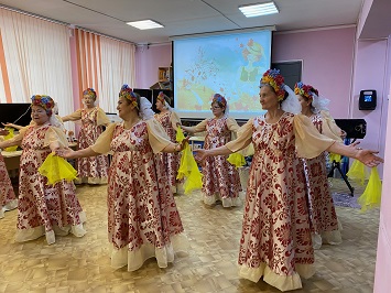 Украшением встречи стало выступление танцевальной группы «Улыбка», под руководством Галины Черняевой, которая является библиоволонтером мероприятий, организуемых библиотекой. Танцоры «Улыбки» исполнили красивый русский танец «Хоровод» и зажигательно сыграли на ложках. Аплодисменты зала и крики «Браво!» говорили о хорошем и праздничном настроении всех женщин в зале.