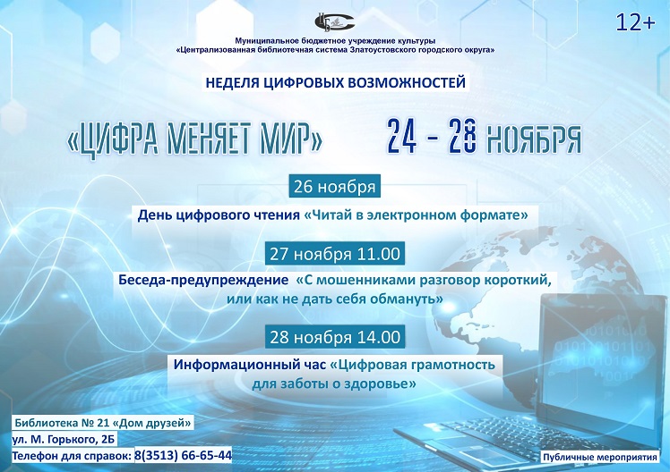 В библиотеке № 21 «Дом Друзей» с 24 по 28 ноября прошла информационная неделя цифровых возможностей «Цифра меняет мир».